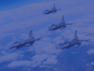 4 jets flying above the clouds with a blue color overlay